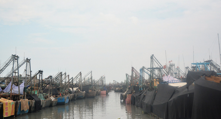 地角碼頭早已;卮罅繚O船,船只停放有序,為長達兩個半月的休漁期到來準備。